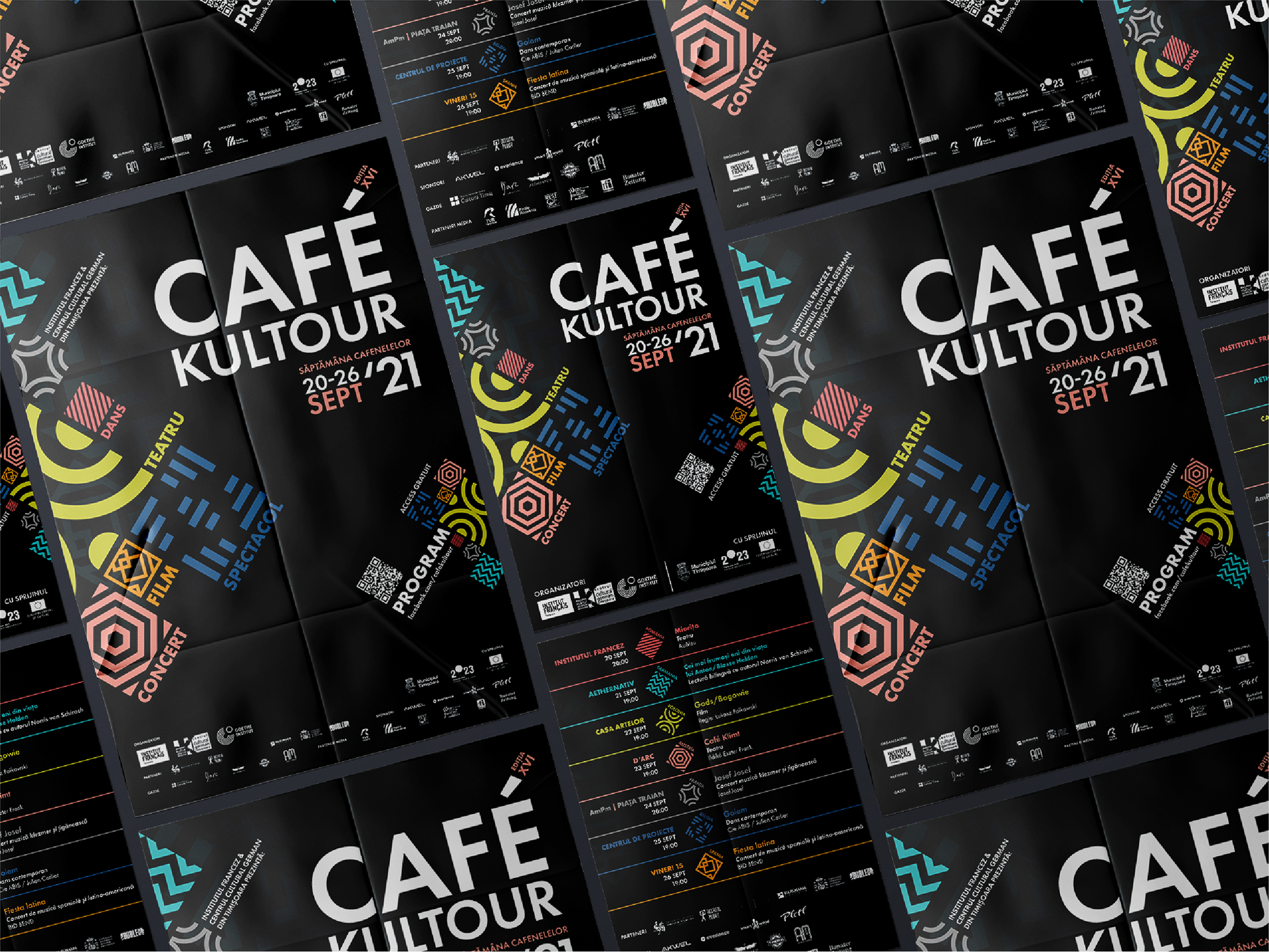 Cafe Kultur is a vibrant cultural event series designed for coffee and culture lovers alike. Spanning seven evenings across seven different locations in Timisoara, this initiative was organized by the French and German Institutes in Romania. I felt privileged and inspired to create the visual identity for the 2021 edition—one that distills the richness of culture into lively graphic language.