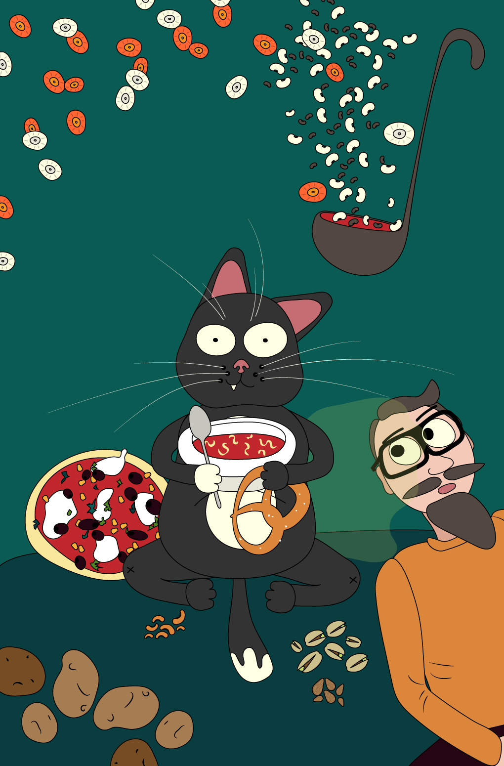 This small illustration project is a gift from me to my better half. A colorful, quirky celebration of shared moments and little joys. Each edition unfolds a new chapter: personal memories and future plans from 2021, mouth-watering food favorites and monthly treats in 2022, and a vibrant homage to beloved movies in 2023 (think you can guess them?). Alongside these are playful cats, splashes of crazy color, awkward yet endearing moments, and a few silly inside jokes that only we truly understand. It’s imperfect, personal, and full of laughter. A joyful reminder that the best stories are the ones lived together.