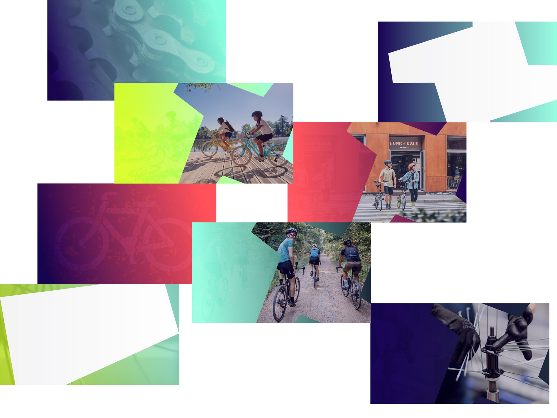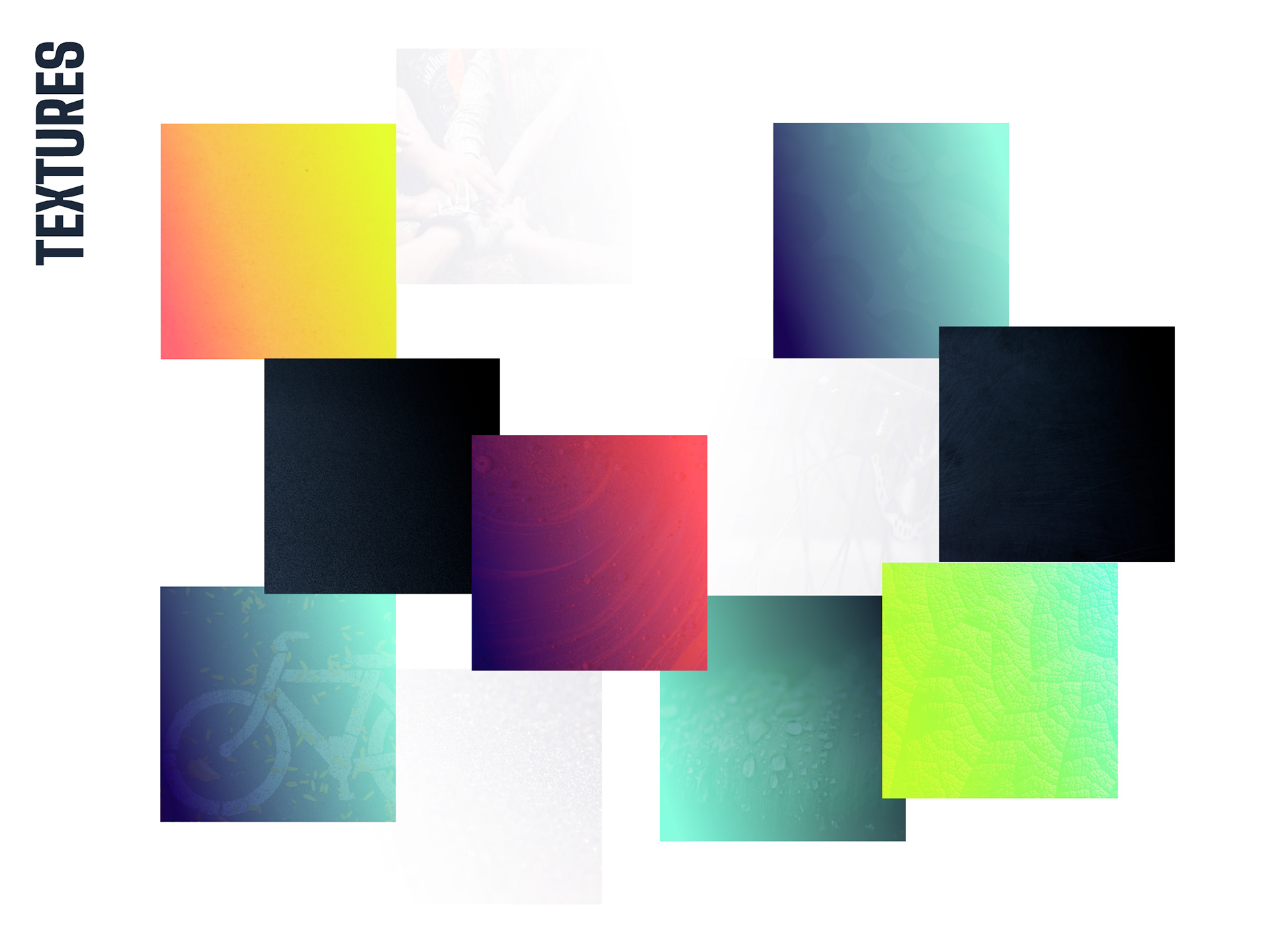 The graphic language oscillates between solid and outline forms, gradients and flat colors, creating a continuous play of contrasts that balance and elevate each other. Textures are used to underline the distinct personalities of each partner project, tying communications together visually while maintaining clarity and focus.